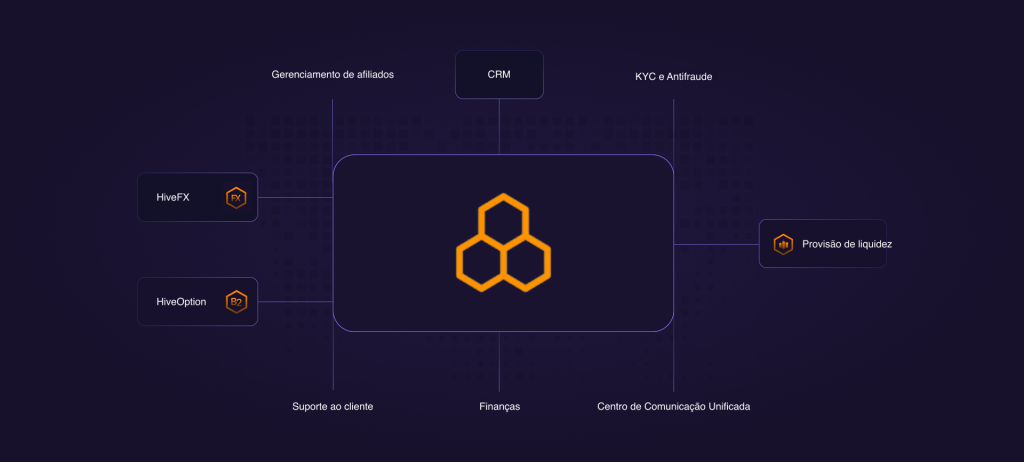 O HiveOS é uma plataforma completa, criada para gerenciar todos os aspectos da sua corretora com inteligência e controle. Com ferramentas avançadas de KYC e antifraude, um CRM completo, rastreamento em tempo real de traders e afiliados, integrações de pagamentos globais e comunicação unificada, o HiveOS oferece controle total sobre suas operações.